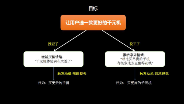 你的产品属性是什么?用户产生什么动机,会想起你产品的独特属性?哪种情绪,会激活用户产生这种动机?用户行为是否对应了你提供属性的需求?比如刚才我们提到的千元手机: