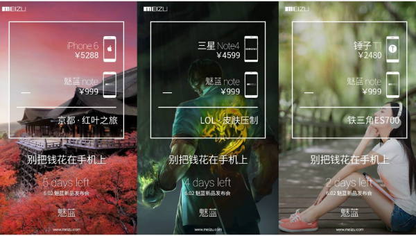 这组海报中提倡,你更应该把钱花在真正让自己愉悦的地方,比如去参加京都.红叶之旅、买LOL.皮肤压制、买一款ES700的耳机,而不是为了外部形象,把钱花在买一部4、5千块的手机上,推动了人们选择新款千元机的动机。