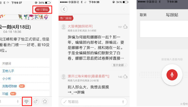 互动式的新闻客户端,小Q推荐网易,网易潜伏着一大批回帖粉丝,且回帖质量较高。从界面的右上角醒目的跟帖按钮可见网易新闻对跟帖评论功能的重视与强化。而经典的网友跟帖评论,机智幽默的评论给用户提供了互动的乐趣,体现了网易的产品定位“有态度的新闻门户”。另外,网易新闻是四款应用中***有语音评论功能的应用,凭借网易大门户优势,能够实用旗下各款产品的功能进行互补增强和连接产品。